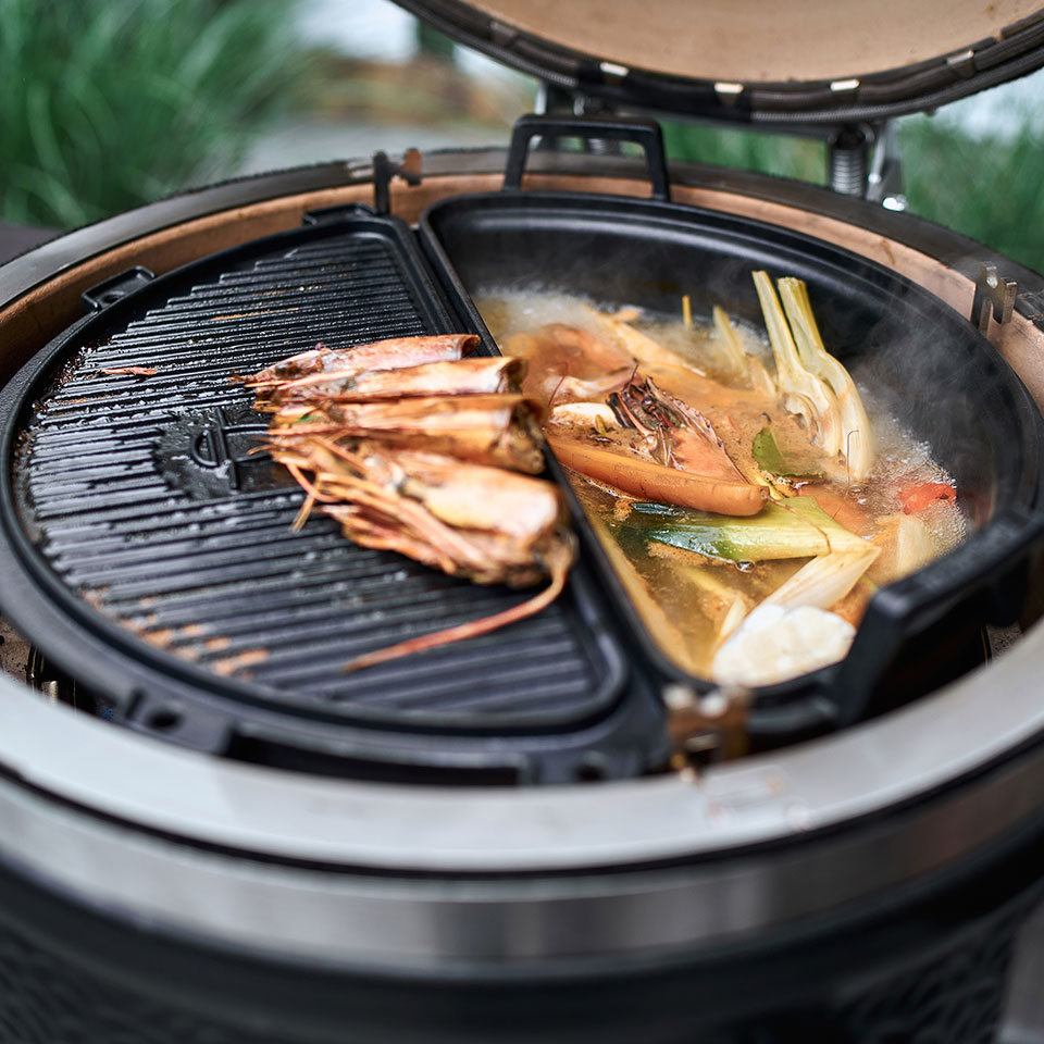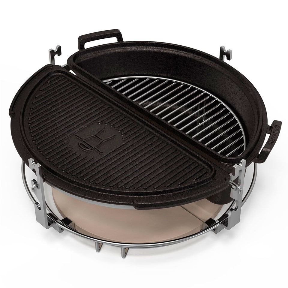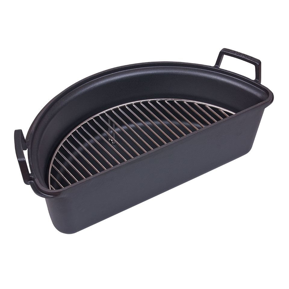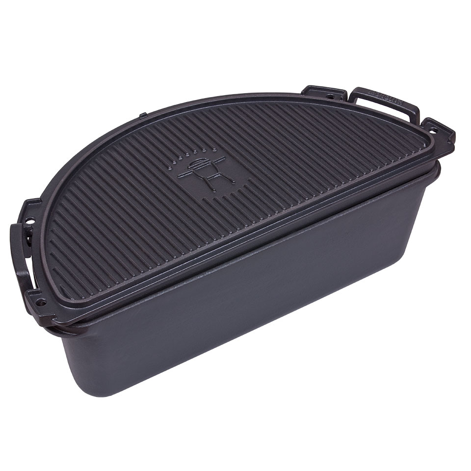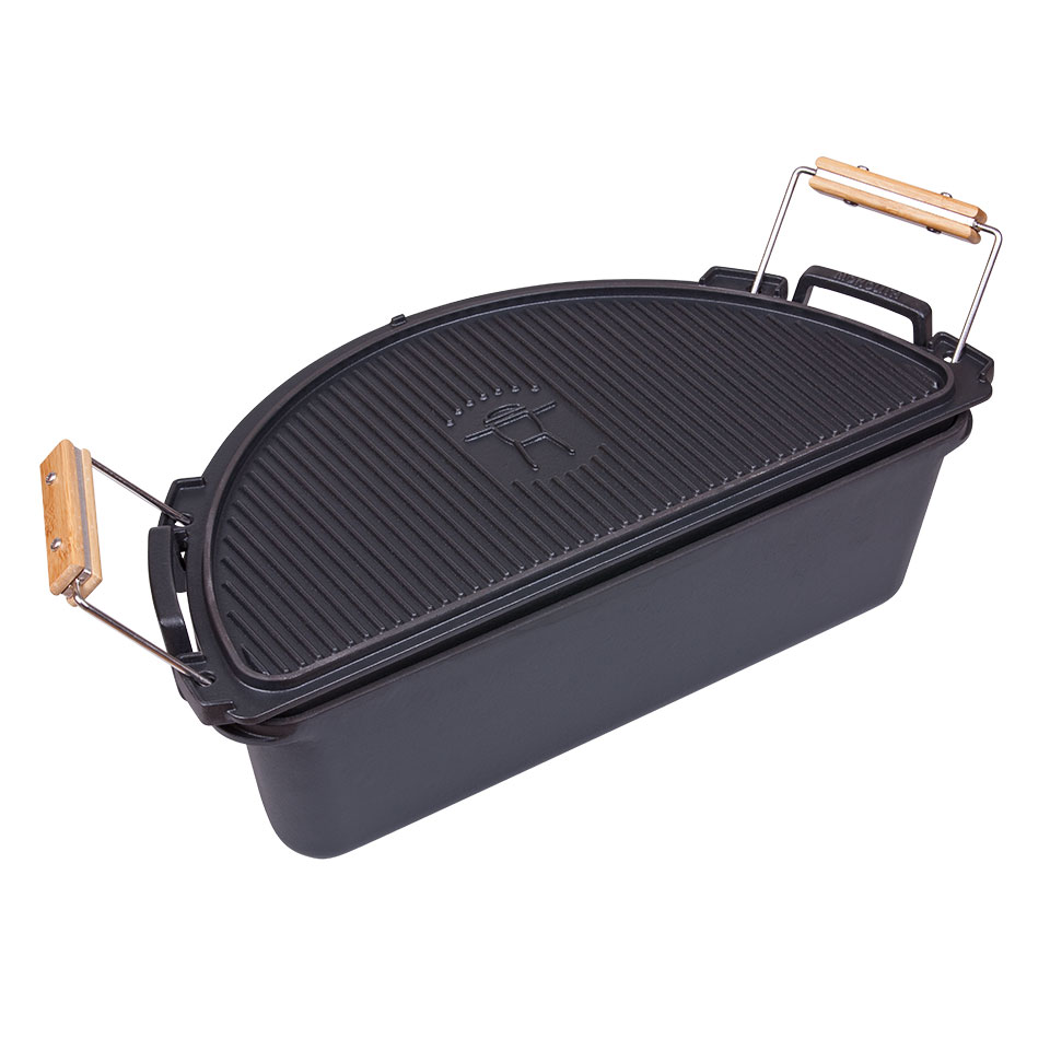 Вес: 11,6 кг Для моделей: MONOLITH CLASSIC, MONOLITH AVANTGARDE Classic. Голландская кастрюля из чугуна – еще один аксессуар, который превращает гриль MONOLITH в идеальную летнюю кухню. Она имеет форму полумесяца – такую же, как и вся система Smart Grid. Крышку кастрюли можно также использовать отдельно как двустороннюю планчу (одна сторона рифленая, а другая гладкая). Внутренняя решетка из нержавеющей стали (входит в комплект) создает второй уровень внутри кастрюли и тем самым наделяет ее дополнительными возможностями. Кастрюля имеет толщину 4 мм и покрыта черной эмалью.