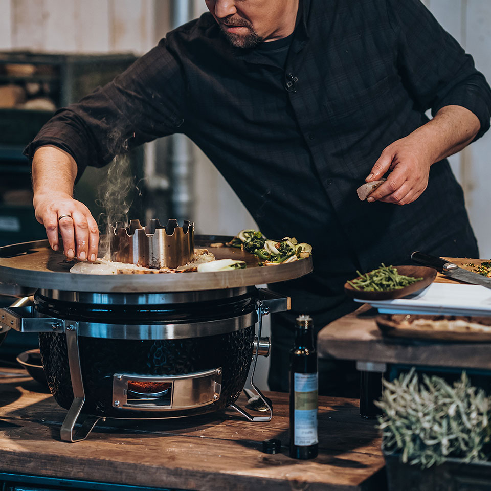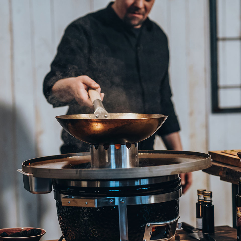 Вес: 1 кг Для моделей: MONOLITH ICON, MONOLITH JUNIOR. Подставка для вока из нержавеющей стали размещается на керамическое кольцо в гриле. С ней тепло концентрируется в центре вока, по краям же температура остается более низкой. Именно такой способ приготовления является традиционным в Азии. Ø 14,5 см. Надевается на отверстие стальной планчи Выполнена из нержавеющей стали