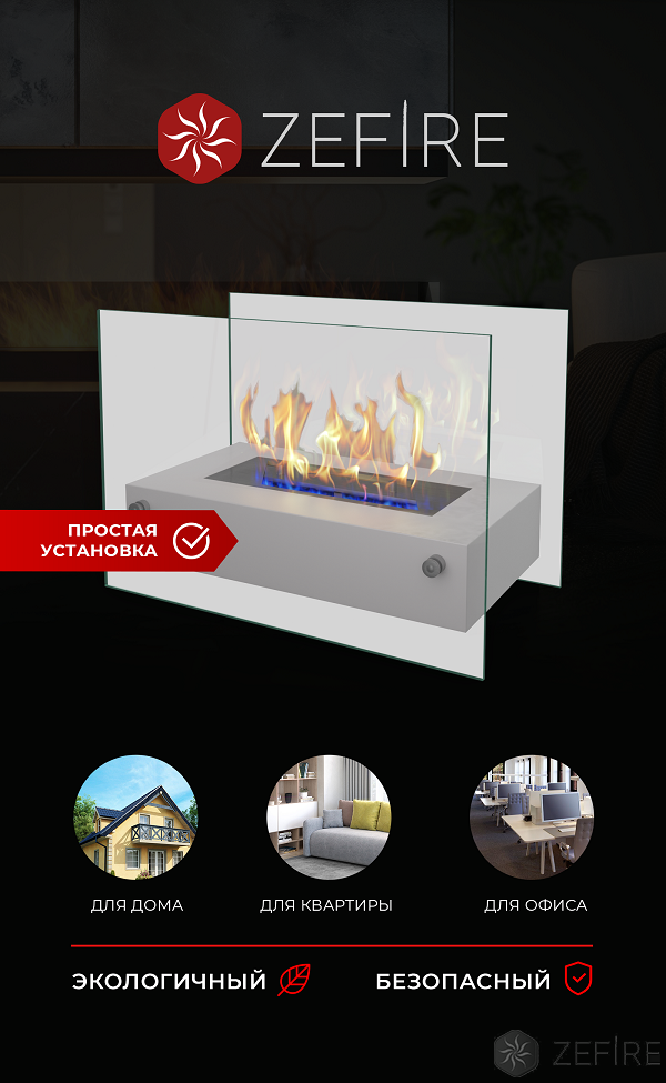 Компактное декоративное устройство собирается по инструкции за 5-7 минут. Остается залить в топку качественное жидкое биотопливо, воспользоваться пьезозажигалкой с длинным носиком – и можно наслаждаться гипнотическим танцем настоящего пламени. Даже если вы находитесь в офисе или городской квартире!