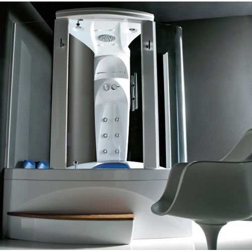 Каскад, 2 подголовника, Смеситель, 16 форсунок по периметру, Стеклянное ограждение, Душевая лейка |