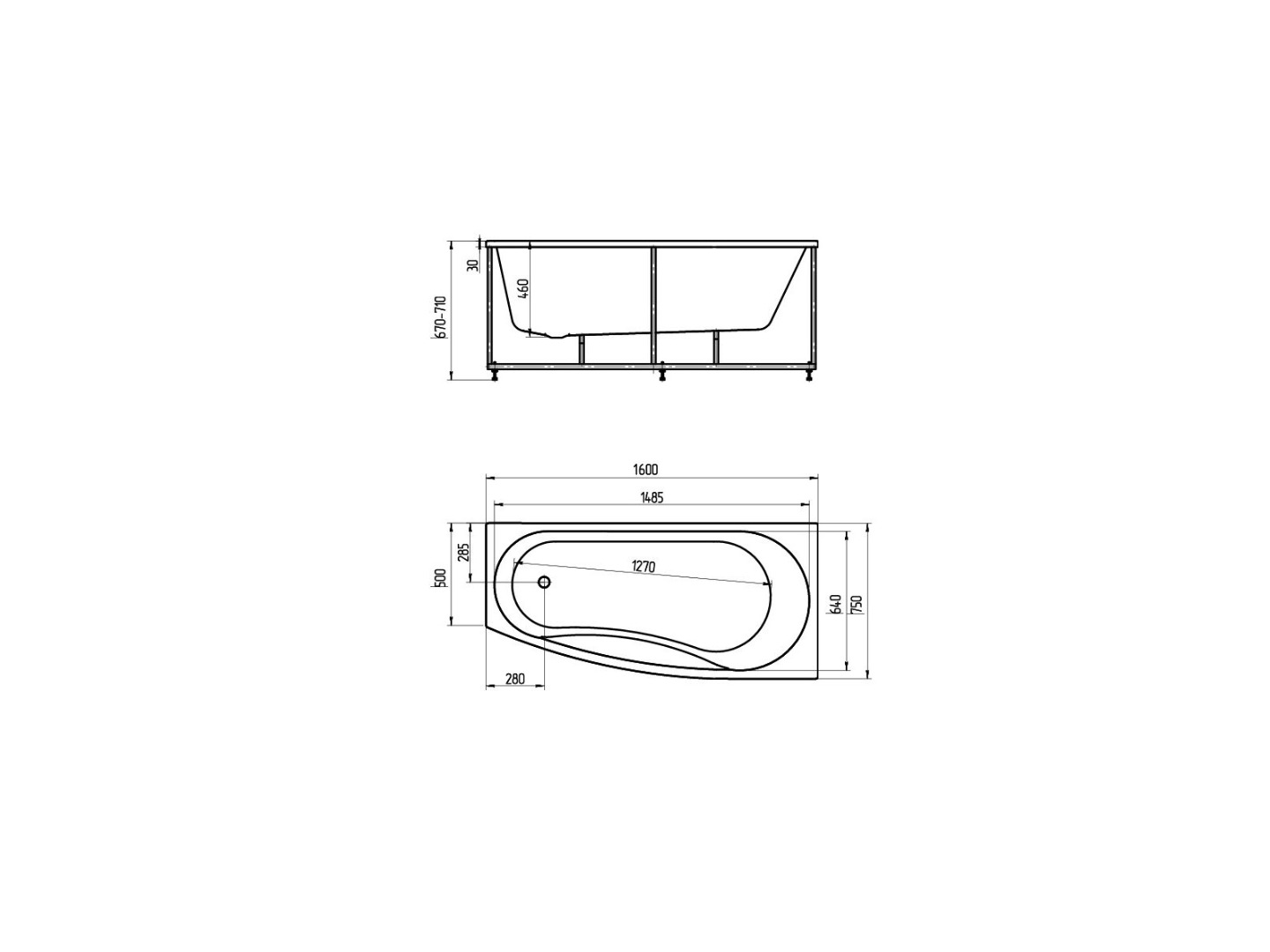 Ванна акриловая Пандора 160х75 (левая, без гидромассажа, с фронтальным экраном)