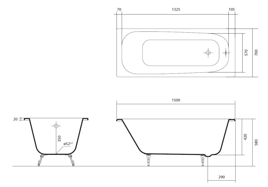 Ванна чугунная прямоугольная Сигма 150х70