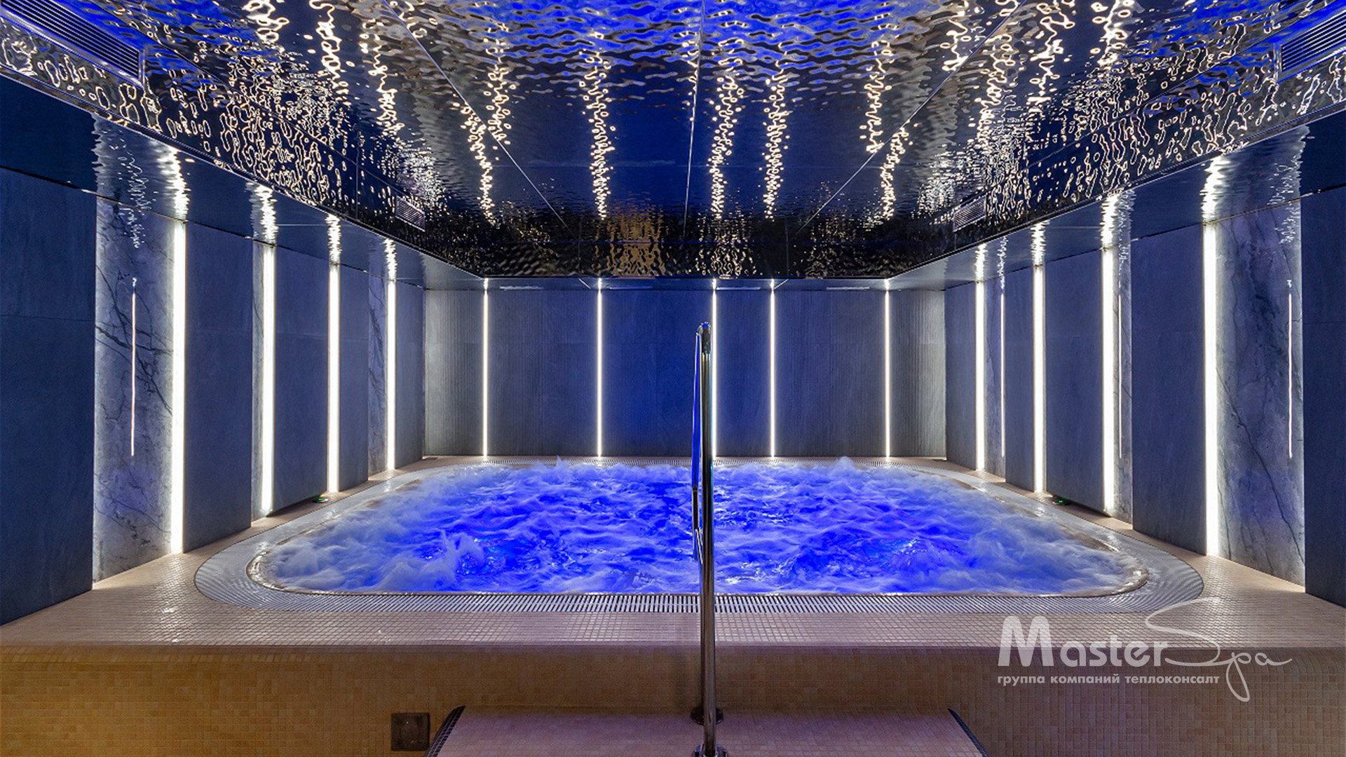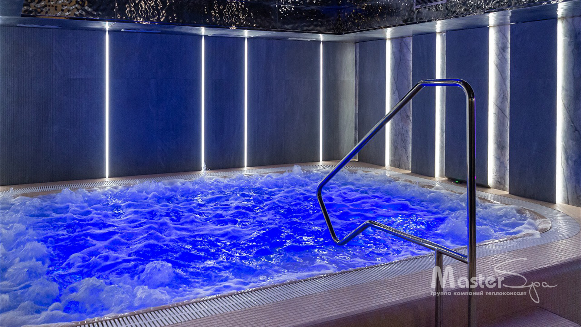 Гидромассажный бассейн с массажными струями и подсветкой в четырехвездочном отеле в Светлогорске- настоящий уголок блаженства…и результат кропотливой работы наших специалистов. Детали бассейна изготавливались под заказ в соответствии с нашим чертежом и концепцией.